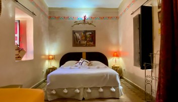 Chambre GHALI Située au premier étage, cette jolie chambre double donne sur un patio arboré. Décorée dans un style traditionnel marocain, elle comporte un…